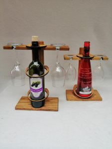 Drveni stalak za flašu sa dvije čaše. Ručno rađen.